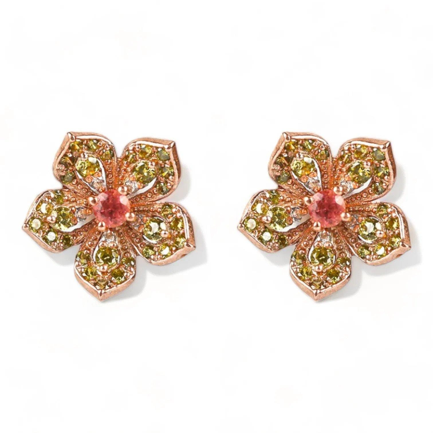 LILY Peridot & Pink Tourmaline Rose Gold Pair Earrings with Pink Tourmaline Stud